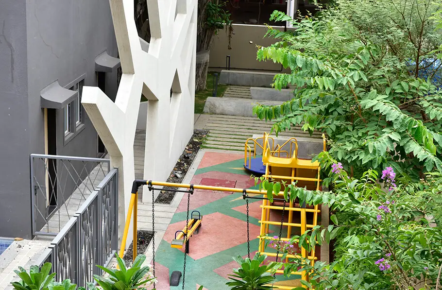 In your Green Spirit residence, you will find peace and tranquility after entering your home. The green walls and the luxury of natural happy grace is a sheer sight to behold for all the nature lovers out there. The project is designed and planned around the trees on the land. The magnificent banyan inspired by our logo stands in glorious green splendor – the symbol of our commitment to nature.